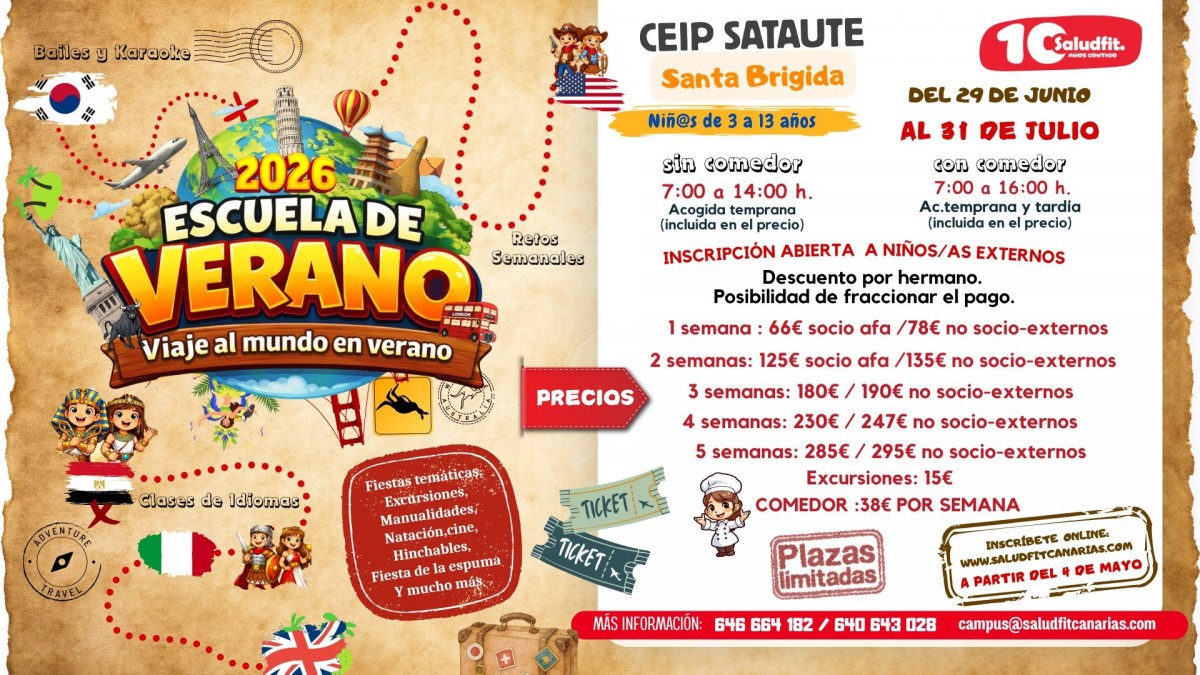 - Del 22 de junio de 2026 al 5 de septiembre 2026 en el ceip César Manrique.