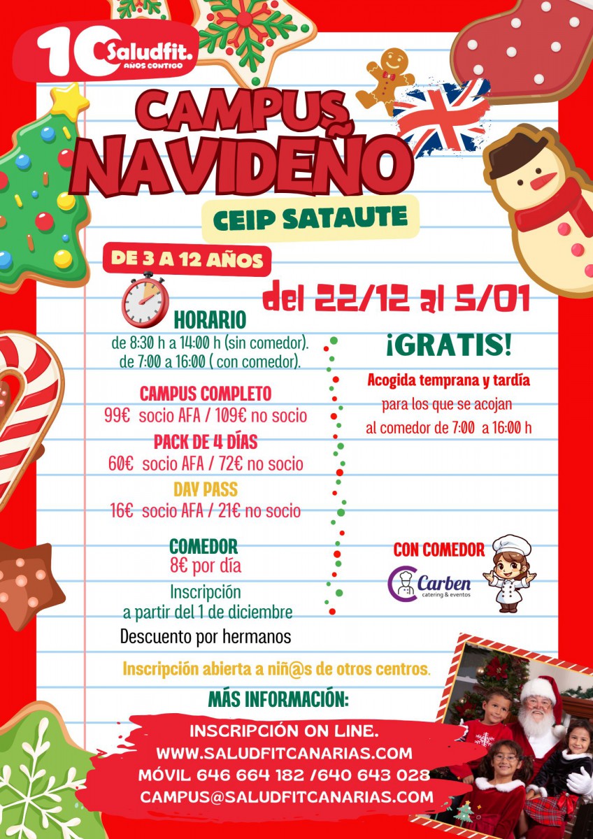 Saludfit Canarias impartirá, en las Instalaciones del Ceip César Manrique , Ceip San Juan y Ceip Juan del Río Ayala los Campus de Verano, Navidad y Semana Santa destinado a niños/as de edades comprendidas entre 3 y 12 años, ambas inclusive.